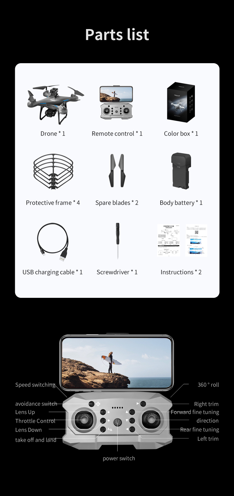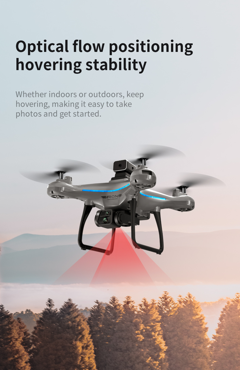 This beginner-friendly drone features SD video capture, headless mode, altitude hold, and one-key takeoff/landing for effortless operation. With a maximum flight time of 8-10 minutes, 100-150m image transmission distance, and advanced functions like obstacle avoidance and voice control, it ensures a versatile and safe flying experience. It's flashy and compact, perfect for travel and outdoor adventures even in the night time.