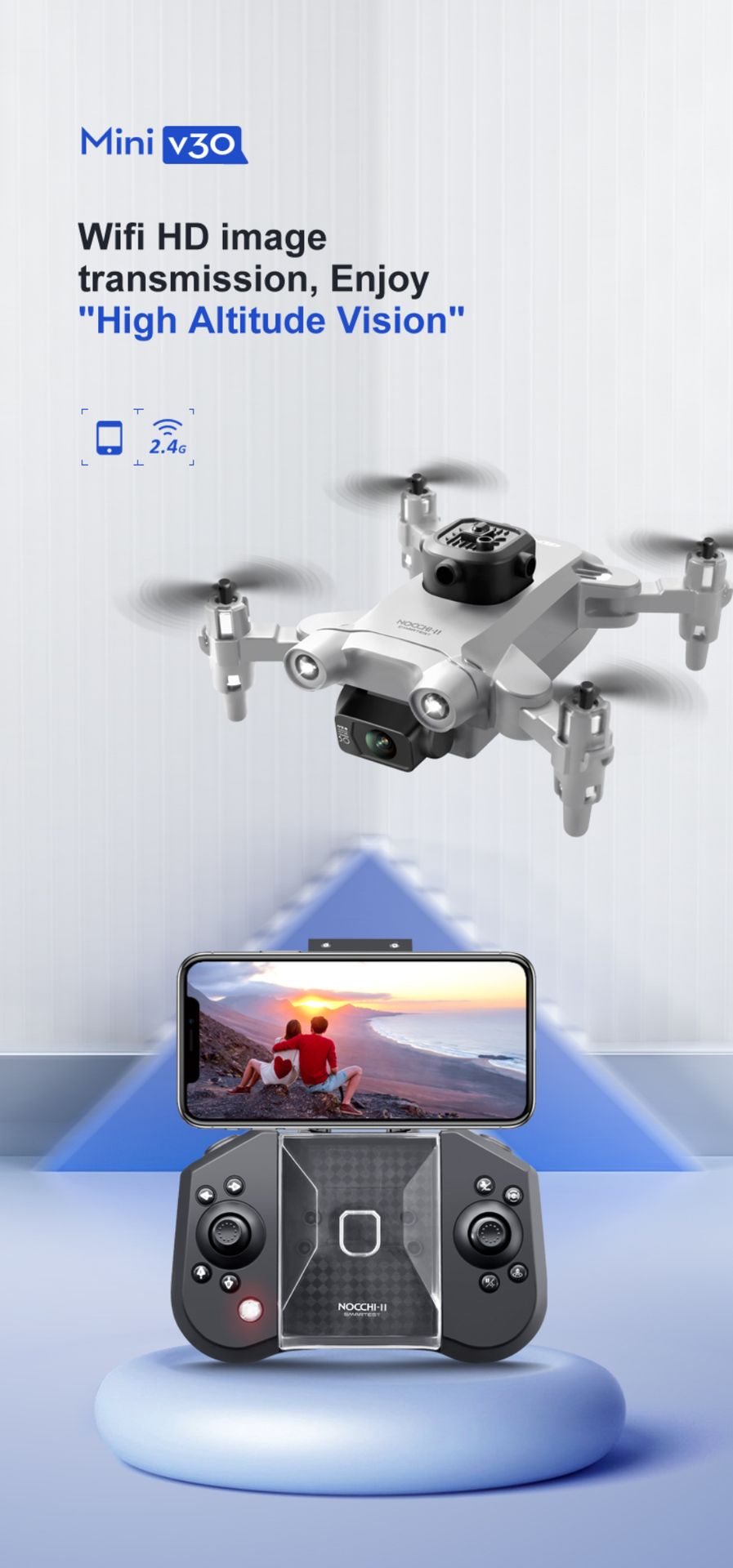 The 4DRC V30 Mini Drone features a foldable design, making it highly portable and easy to carry. Equipped with a WIFI camera, it supports real-time image transmission to mobile devices via an APP, enabling photo and video capture. Its modular battery system ensures convenient replacement, while enhancing safety and stability during flight. The drone is made of high-strength, crash-resistant engineering plastics, ensuring durability and reliable performance for beginners and educational use.