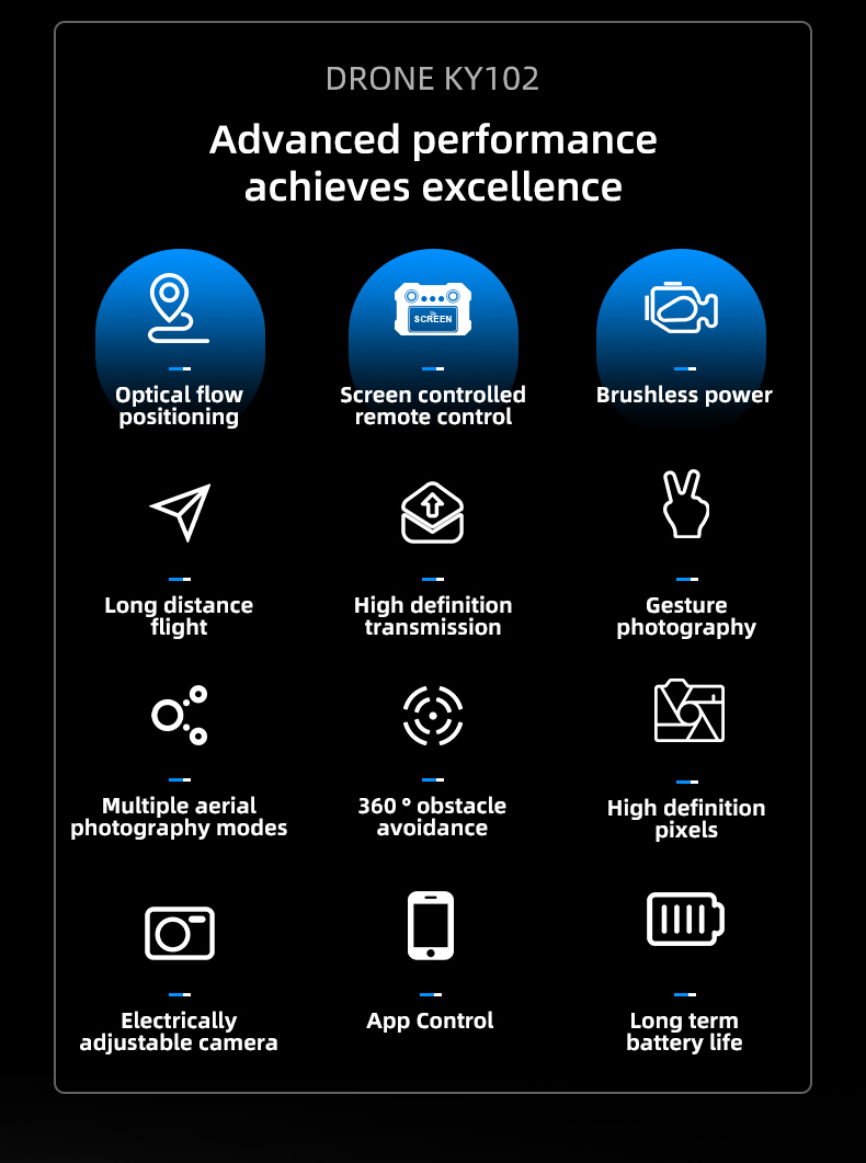 This beginner-friendly drone features a foldable design, dual cameras, and multiple intelligent functions such as headless mode, altitude hold, and voice control. With a 150m image transmission distance, HD video capture with an FPV screen on the remote, and a maximum flight time of 10-20 minutes, it is ideal for aerial photography and obstacle avoidance. The durable ABS material ensures longevity, while the 6-axis gyro provides stable flight performance.