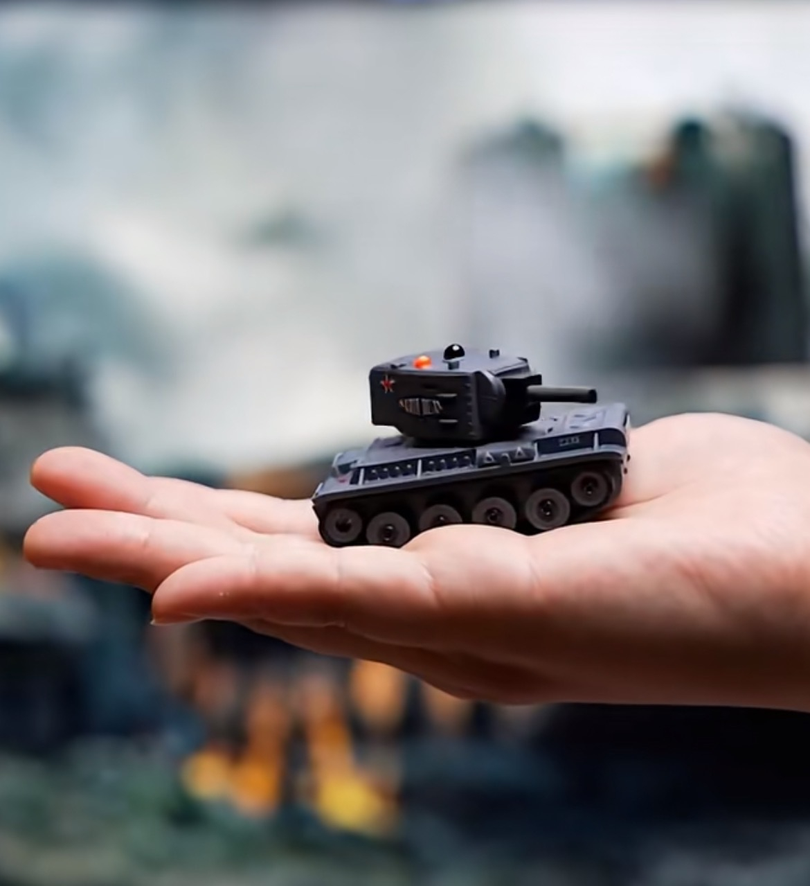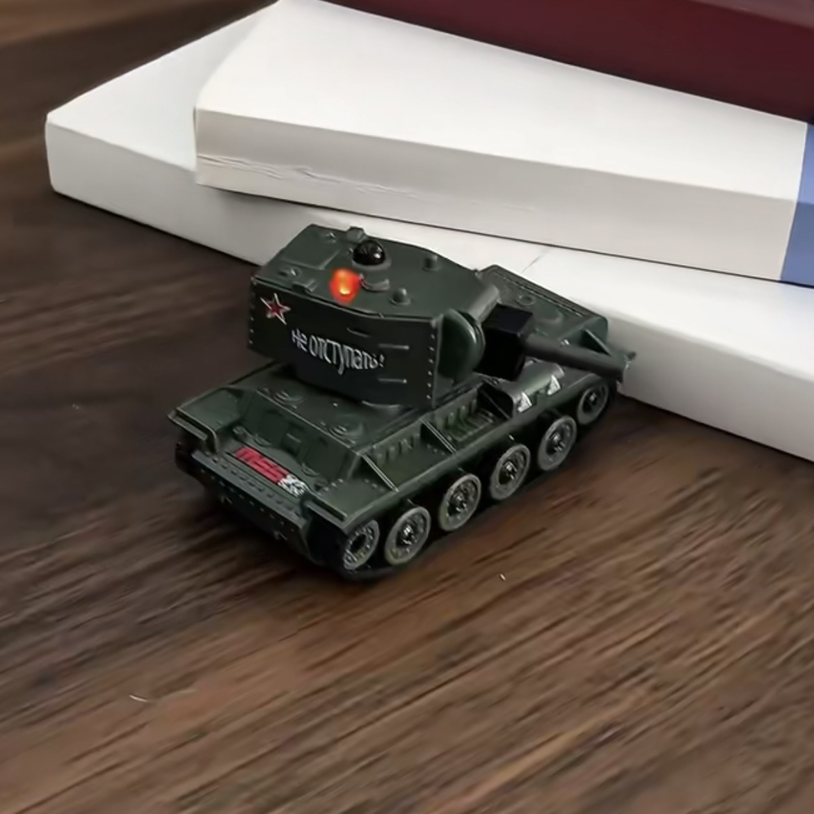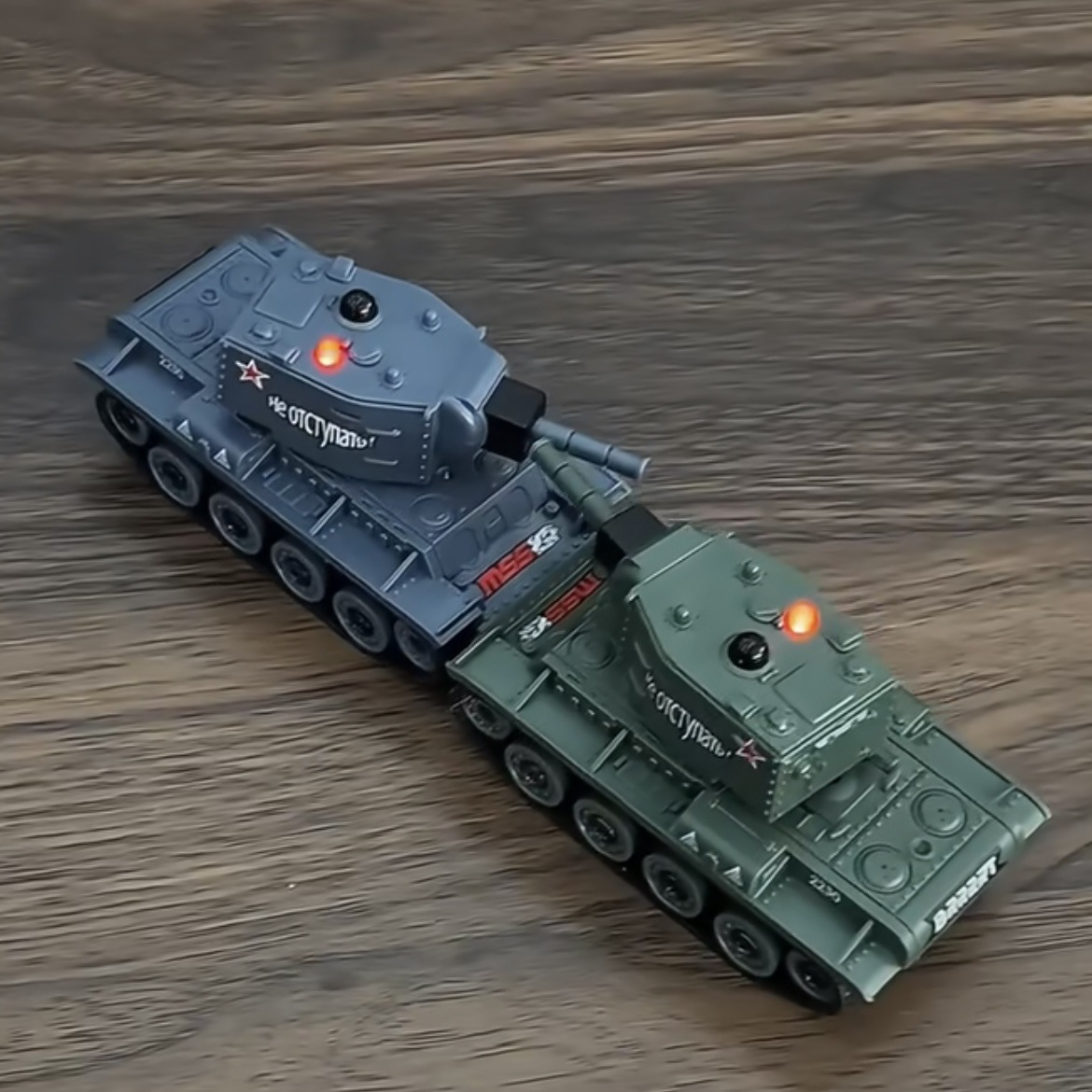 Challenge a friend to an epic battle with these 1:64 scale Mini RC Tanks! Aim your rotating turret and fire—tanks react to hits with flashing lights and realistic recoil until one is knocked out of the game. Use the full remote to drive, spin, and outmaneuver your opponent. Note: Two or more tanks are required for battle mode.