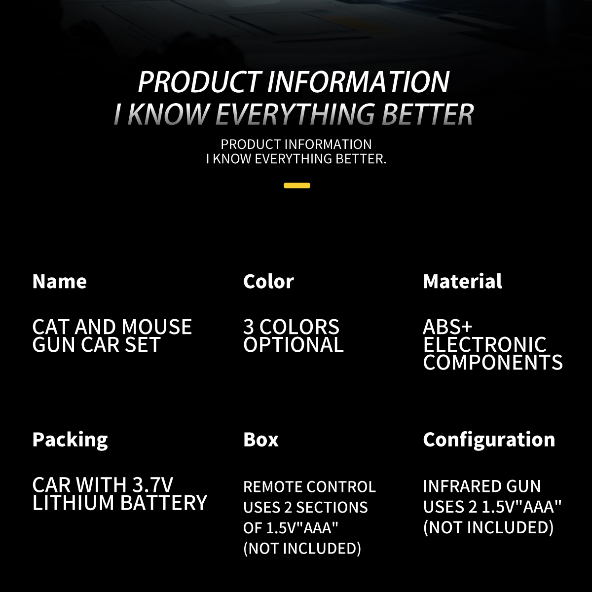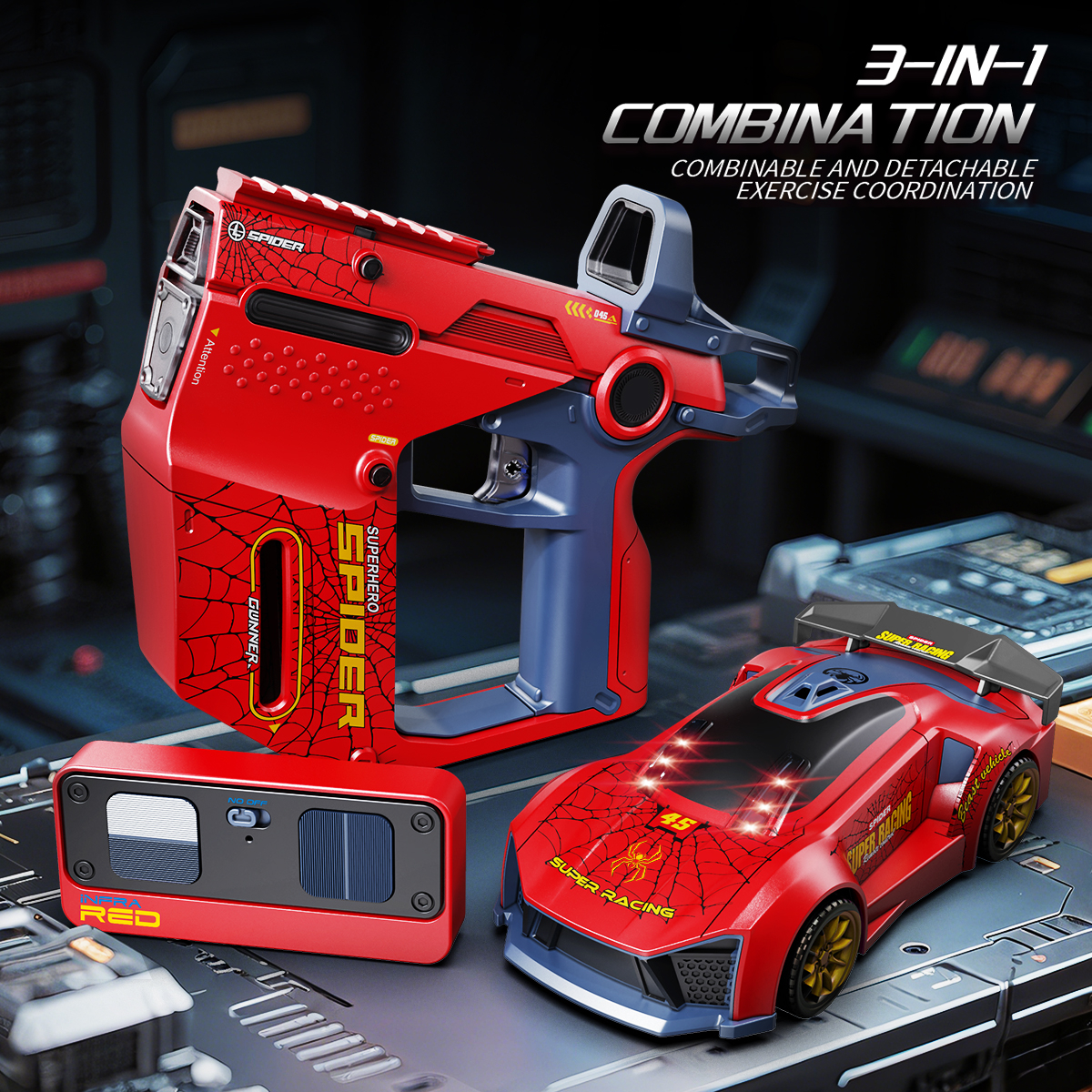 Experience the ultimate "Cat and Mouse" battle with this action-packed Infrared Combat Racing Set! This interactive toy pits a driver against a shooter: one player navigates the high-speed RC car to dodge attacks, while the opponent aims to strike it with the infrared blaster. The car features a real-time damage system with 4 lives—survive the chase or endure four hits and watch the car dramatically flip over in defeat. It’s high-speed, competitive fun perfect for siblings and friends.