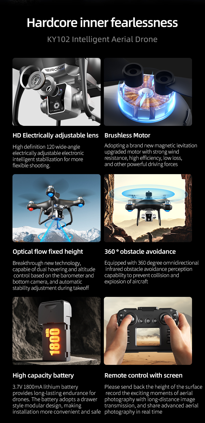 This beginner-friendly drone features a foldable design, dual cameras, and multiple intelligent functions such as headless mode, altitude hold, and voice control. With a 150m image transmission distance, HD video capture with an FPV screen on the remote, and a maximum flight time of 10-20 minutes, it is ideal for aerial photography and obstacle avoidance. The durable ABS material ensures longevity, while the 6-axis gyro provides stable flight performance.