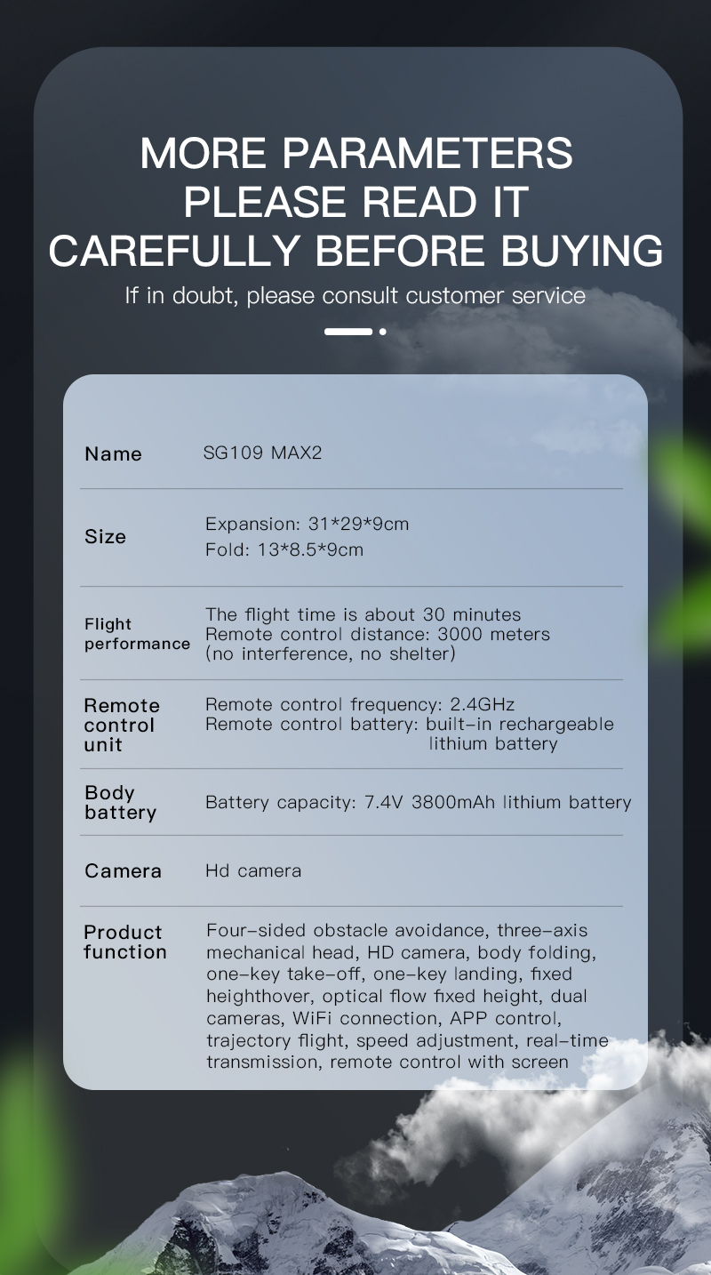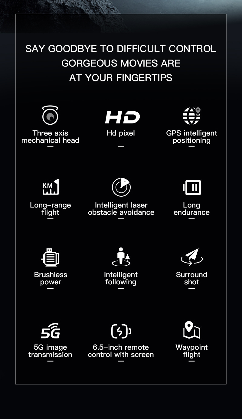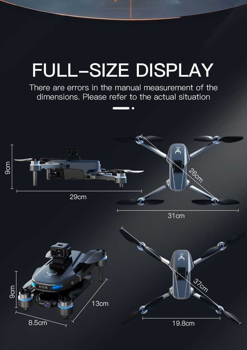 This pro drone features a 4K Ultra HD camera, GPS, obstacle avoidance, and LED lights, offering 21-30 minutes of flight time with a 3 km image transmission distance. Equipped with advanced functions like headless mode, altitude hold, 3D view mode, dual cameras, and voice control, it ensures a user-friendly experience. The foldable design and brushless motor make it both portable and durable.